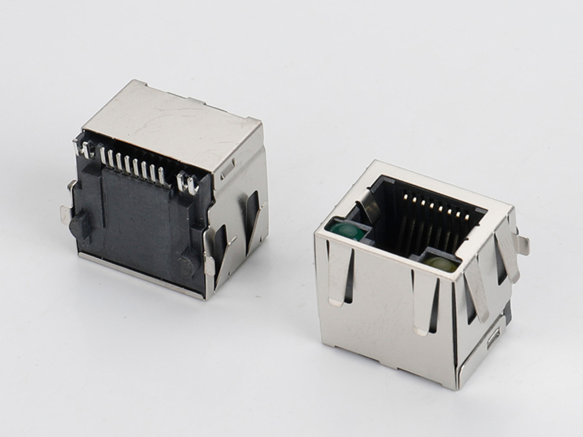 RJ45 带屏蔽壳,有弹,左黄右绿