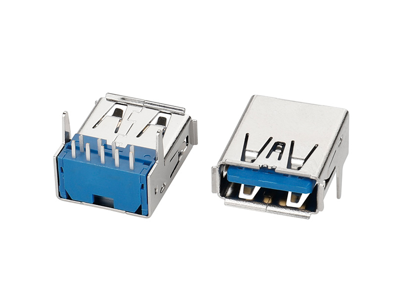 USB 3,0-USB 3,0母座DIP 90度蓝色胶芯直脚