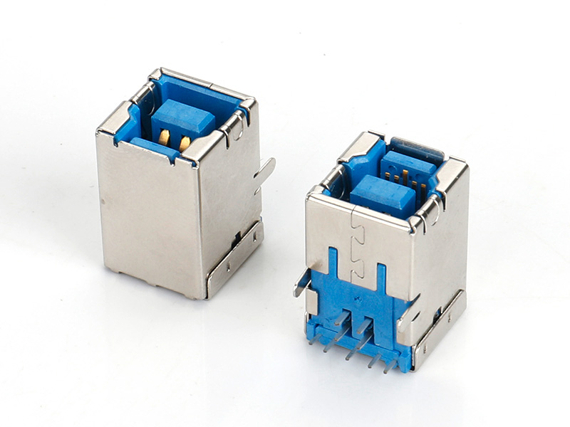 USB 3.0 BF 90度插板式,半金蓝胶,端子半金GF