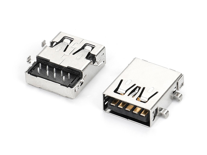 USB3.1 AF 90度 反向沉板CH1.5 PA9T黑胶无卤 端子半金锡足1U 直边直脚不锈钢壳镀镍
