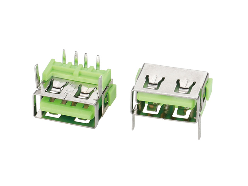 USB 2,0-AF90度前两脚插后插绿胶平口铁H7,8