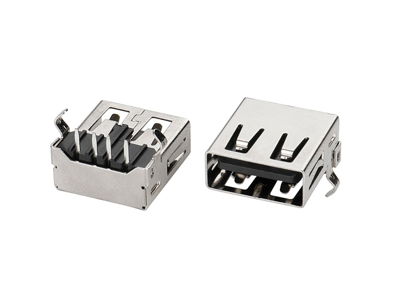 USB 2,0-AF90度弯脚黑胶平口带后盖铁
