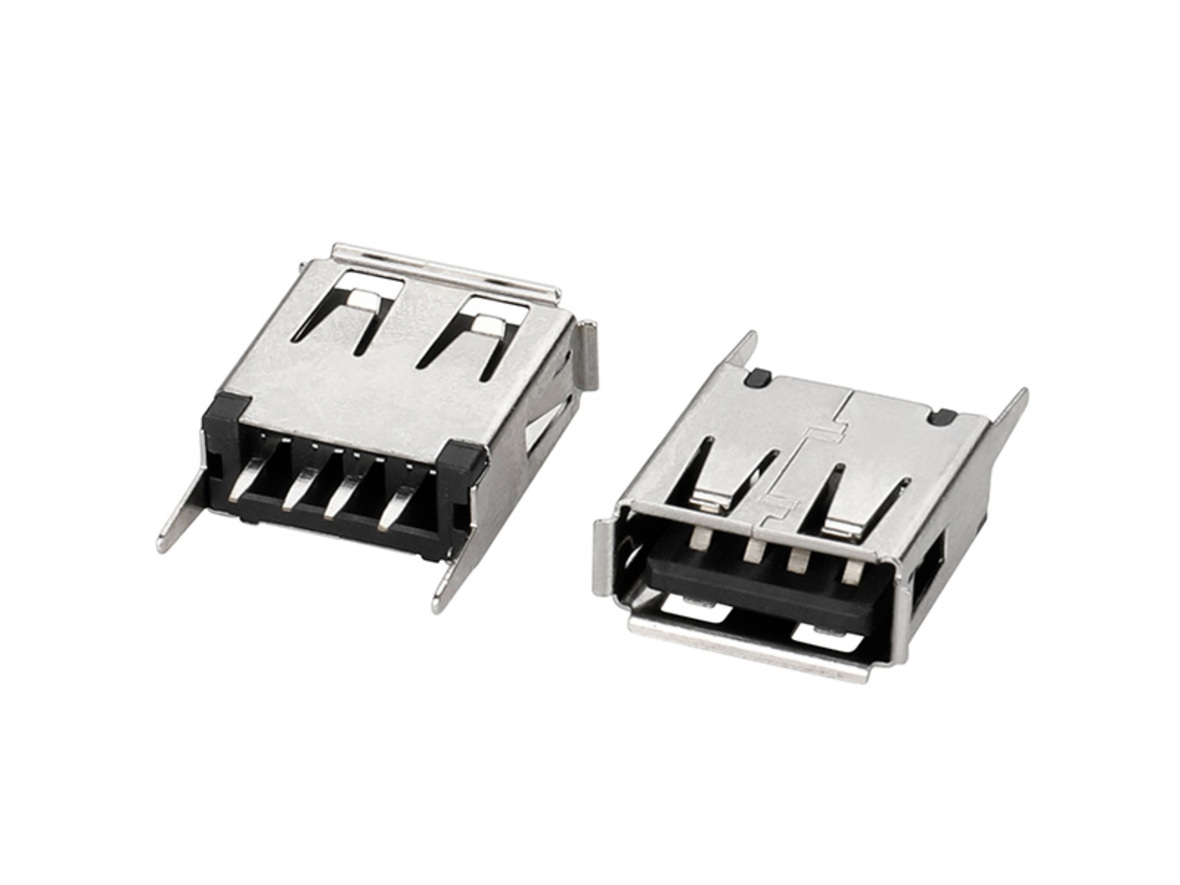 USB 2,0-AF180度全包黑胶铁直脚13,7
