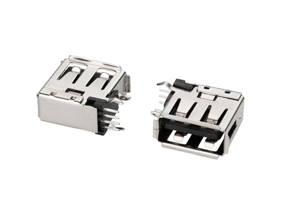 USB 2,0-AF侧插短体13,7黑胶弯脚O型卷边铁