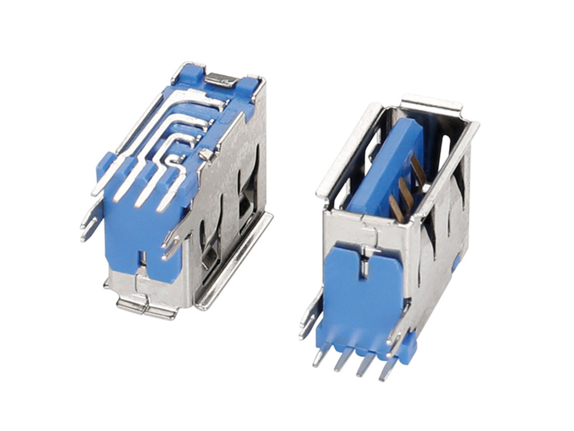 USB 2,0-AF侧插蓝胶10,0中间无固定脚卷边铁