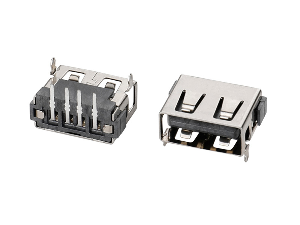 USB 2,0-AF短体前两脚插后插黑胶平口铁6,3
