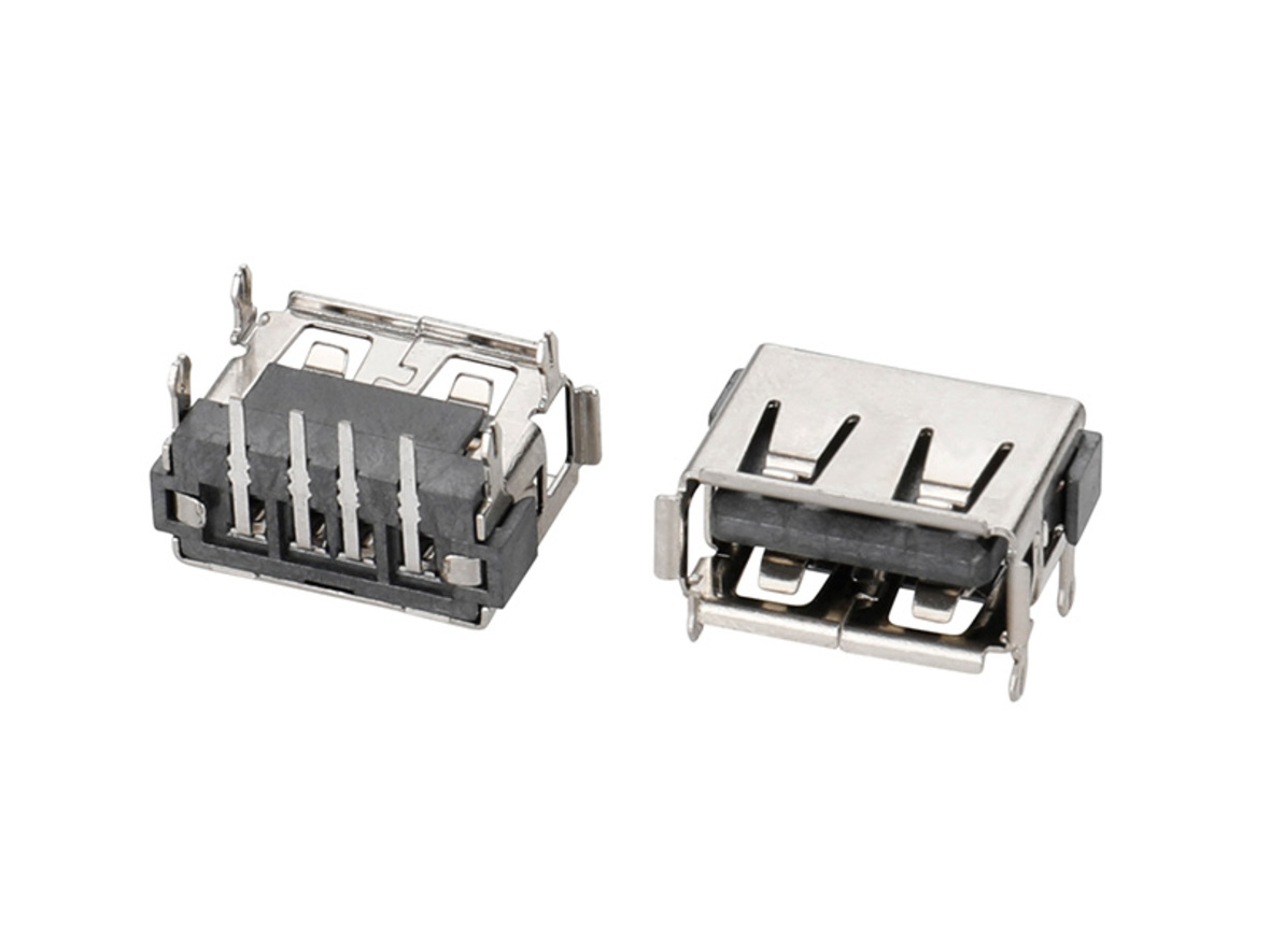 USB 2,0-AF短体四脚插后插黑胶卷边铁6,3