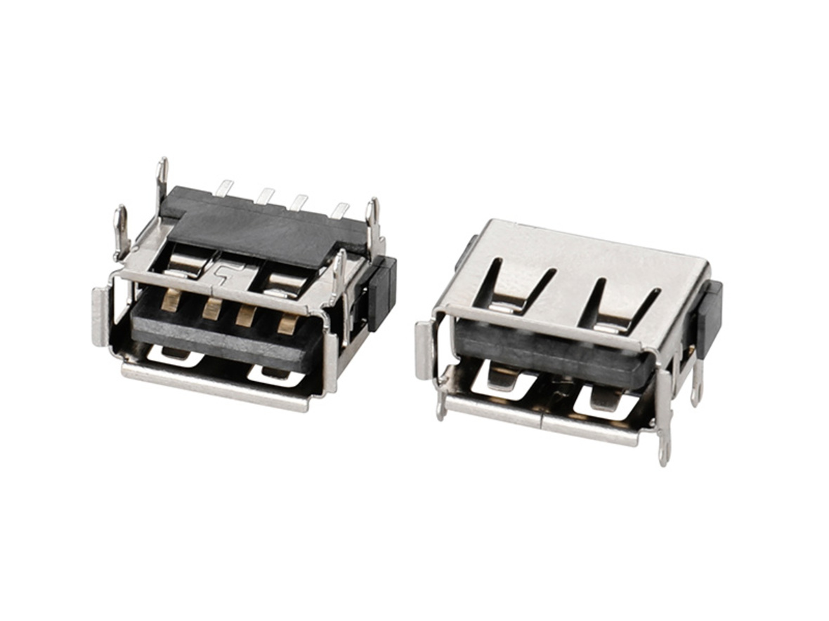 USB 2,0-AF短体四脚插后贴黑胶铁有卷边厚度6,35mm光面