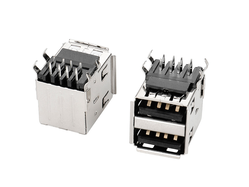 USB 2,0-AF双层90度弯脚黑胶卷边铜