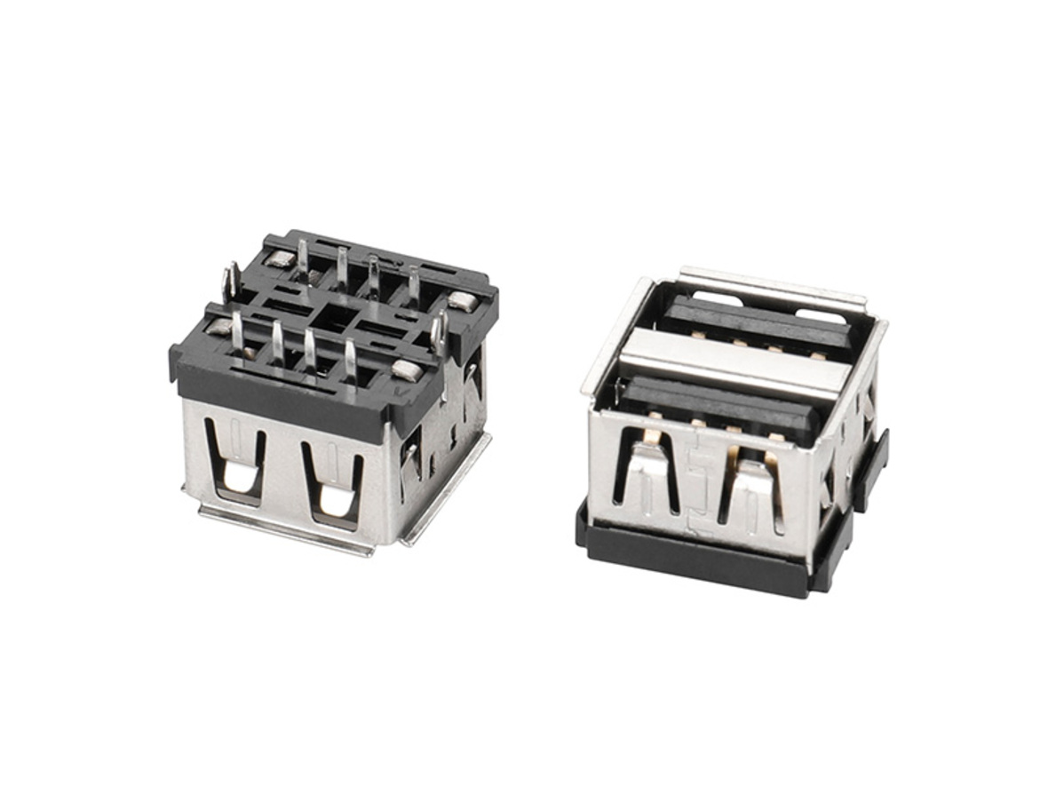 USB 2,0-AF双层180度10,0黑胶卷边铁直叉脚