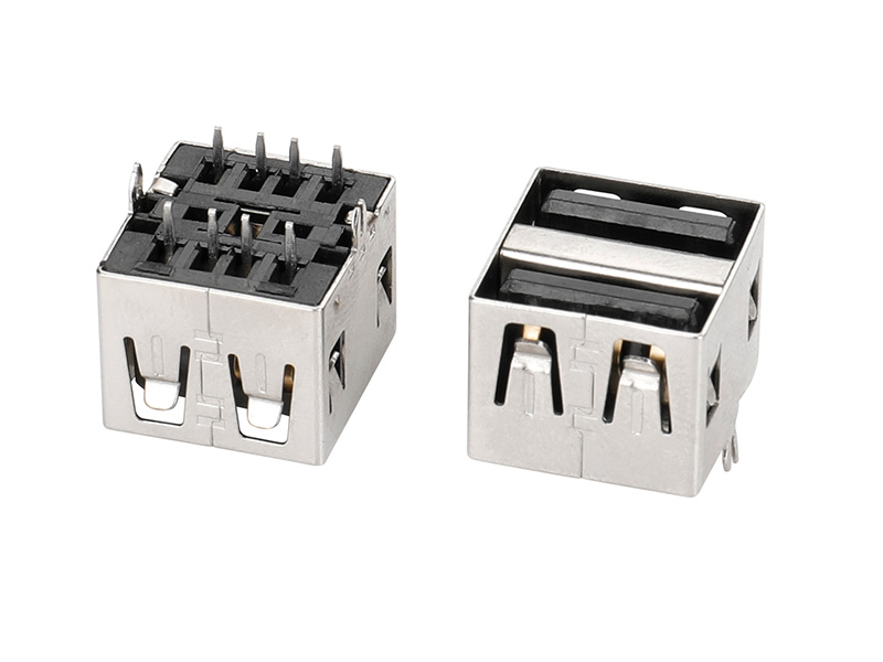 USB 2,0-AF双层180度短体10,5黑胶PBT铁双插脚哑面