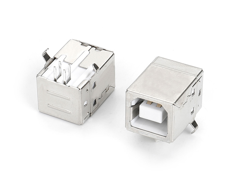 USB 2.0 BF 90度插板式(H=10.8mm)PBT白胶,端子半金GF 弯脚铁壳镀镍DIP型