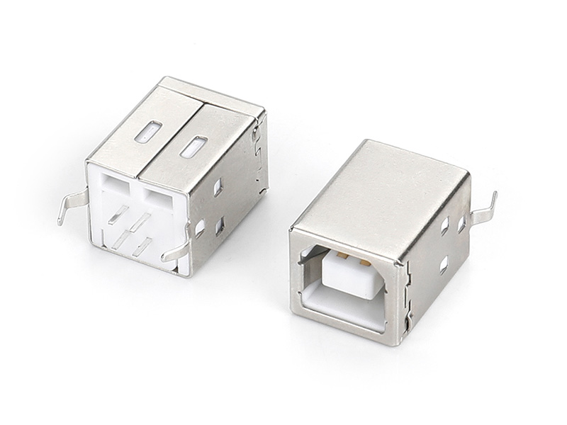 USB 2.0BF 180度插板式(H=16.0mm)半金GF 弯脚铁壳镀镍DIP型
