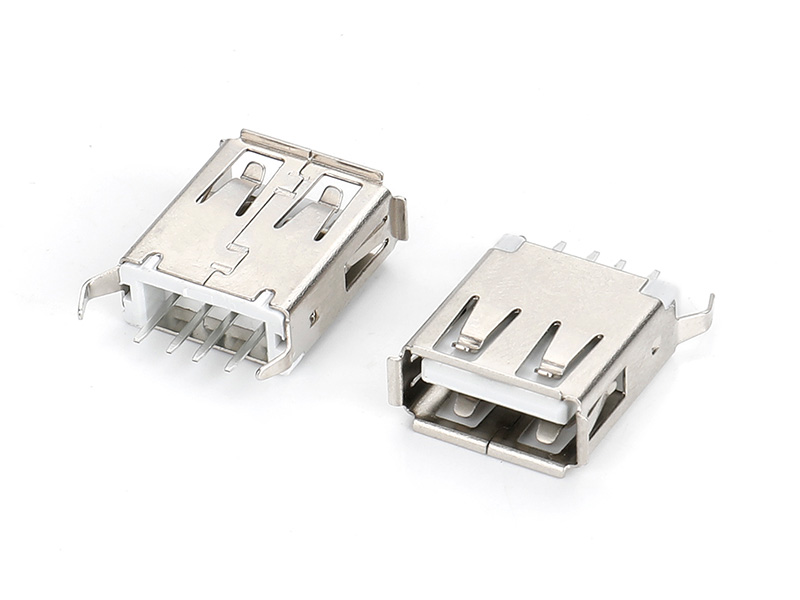 USB2.0 AF 180度插板式 磷铜端子半金GF 外壳镀亮镍 DIP 弯脚有卷边15.0MM