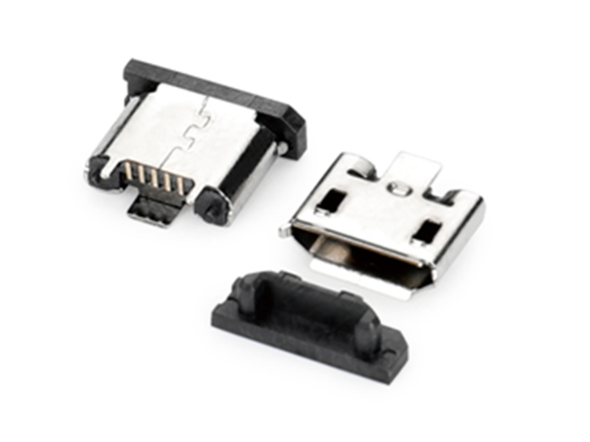 MICRO USB 5P 立式三支脚立贴有柱有边SMT