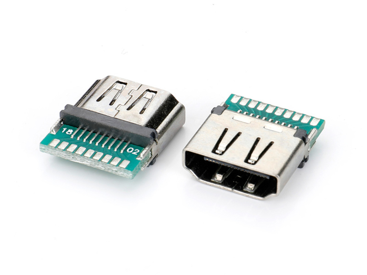 HDMI 180度夹板式,外壳镀镍带PCB板