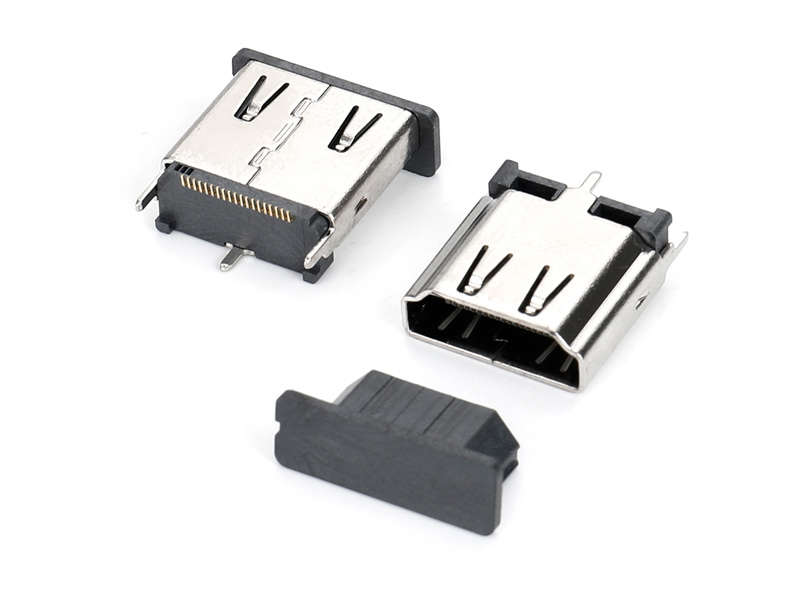 HDMI AF 19P 180°立式(15mm) LCP料 端子全金GF SMT脚脚长1.9mm 铜壳镀镍