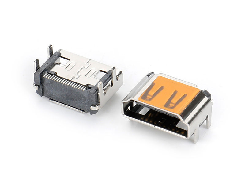 HDMI反向SMT式铜壳镀镍,端子半金亮锡1u
