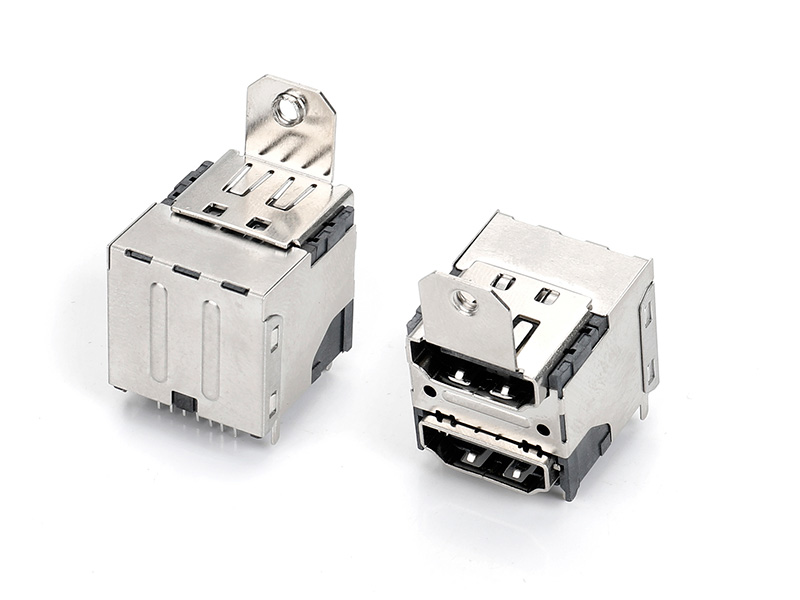双层HDMI DIP三排 带定位柱,LCP黑胶半金GF 外壳不锈钢,有耳7.2mm无柱